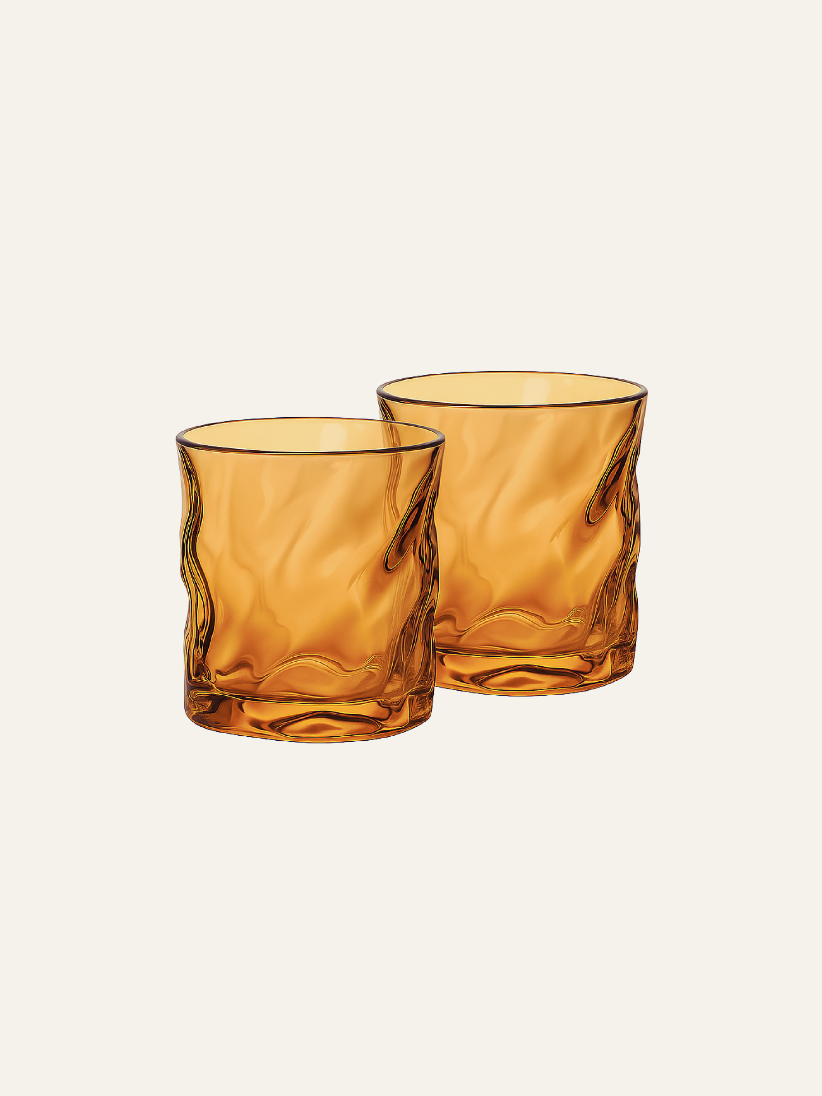 Crafted from durable, amber-tinted glass, the Bel Air Coves Glasses are ideal for serving refreshing water, fine spirits, or thoughtfully crafted cocktails. Their warm hue and sculptural form make every pour feel intentional, whether for everyday use or special occasions.