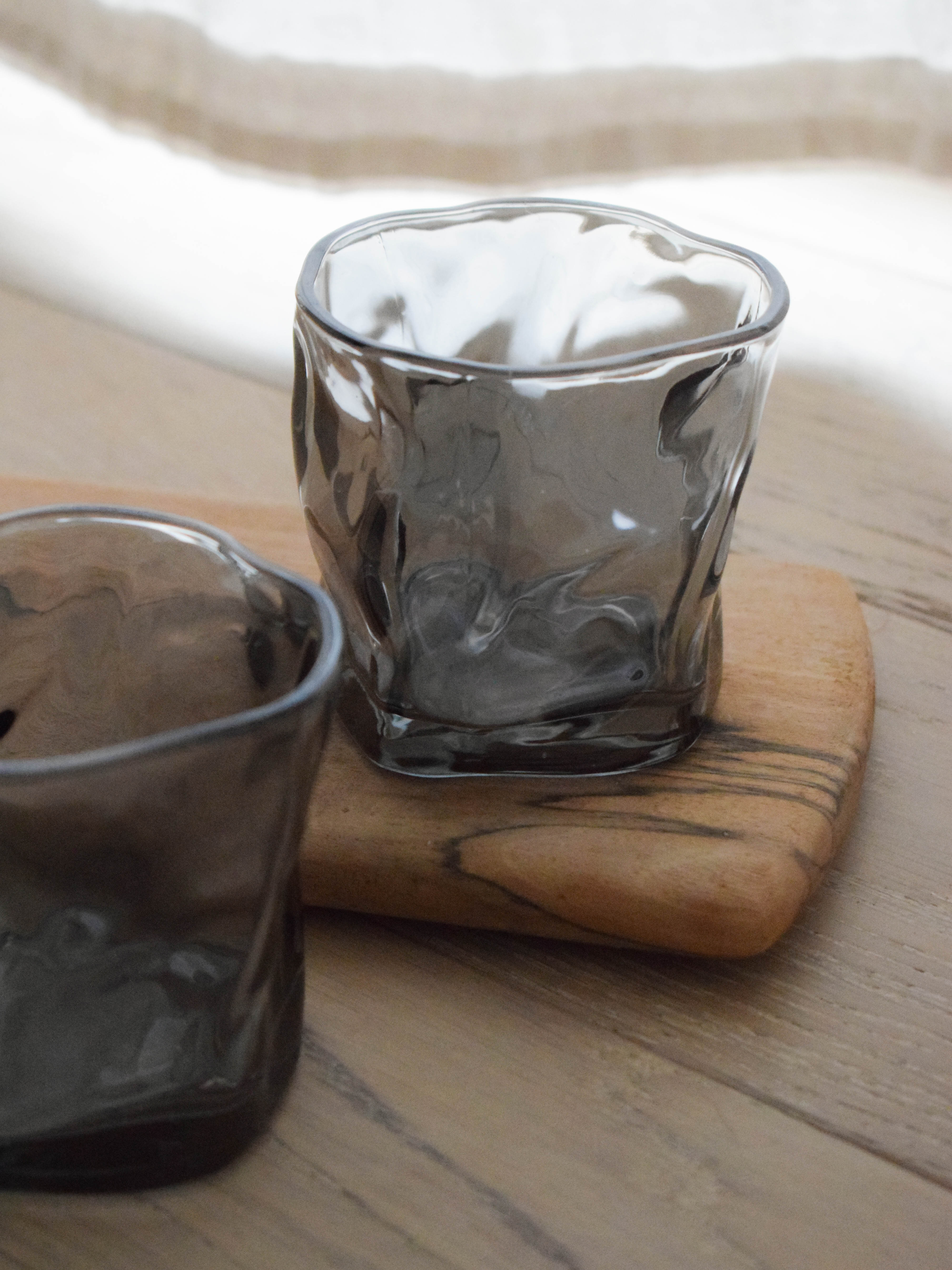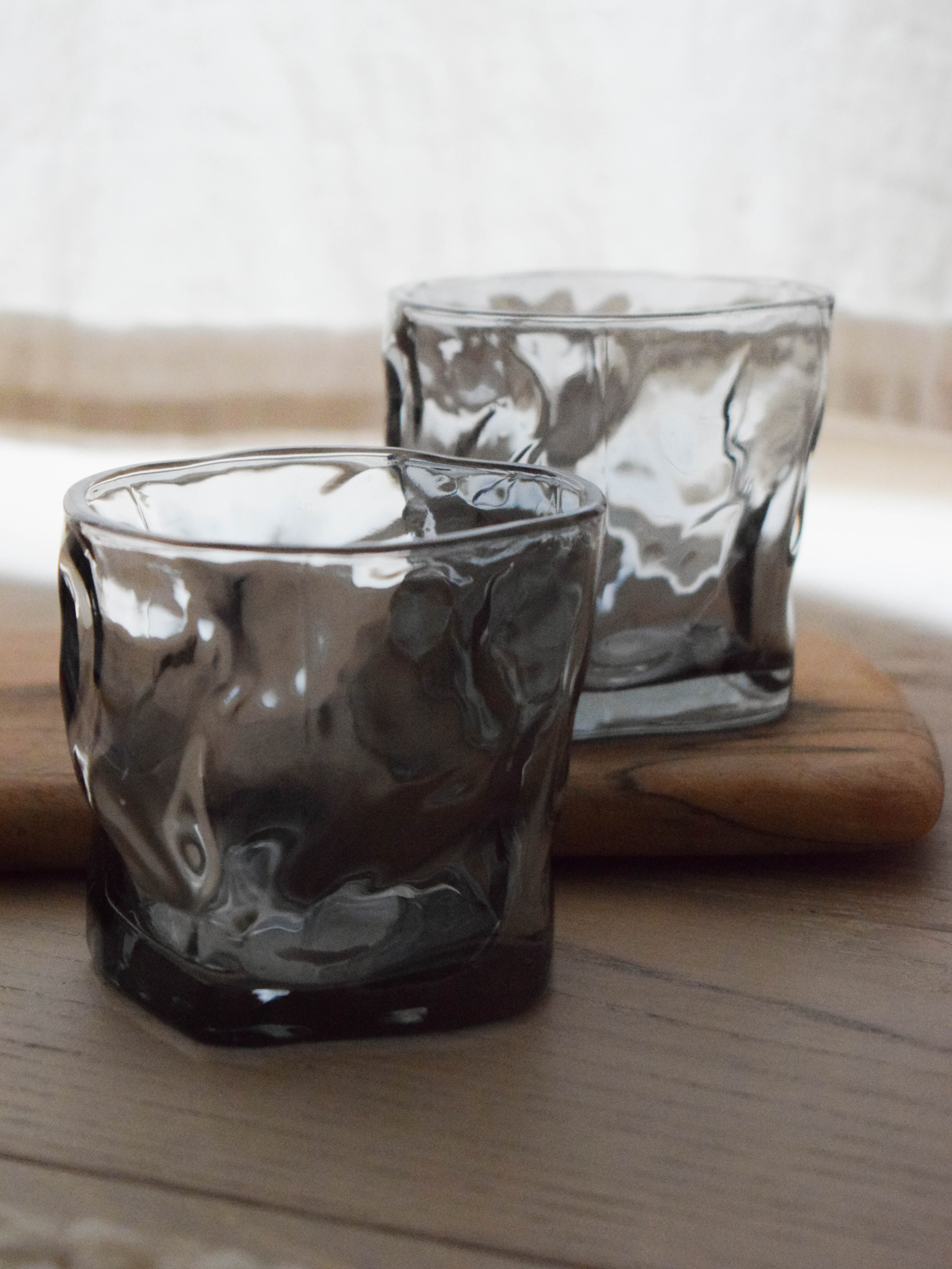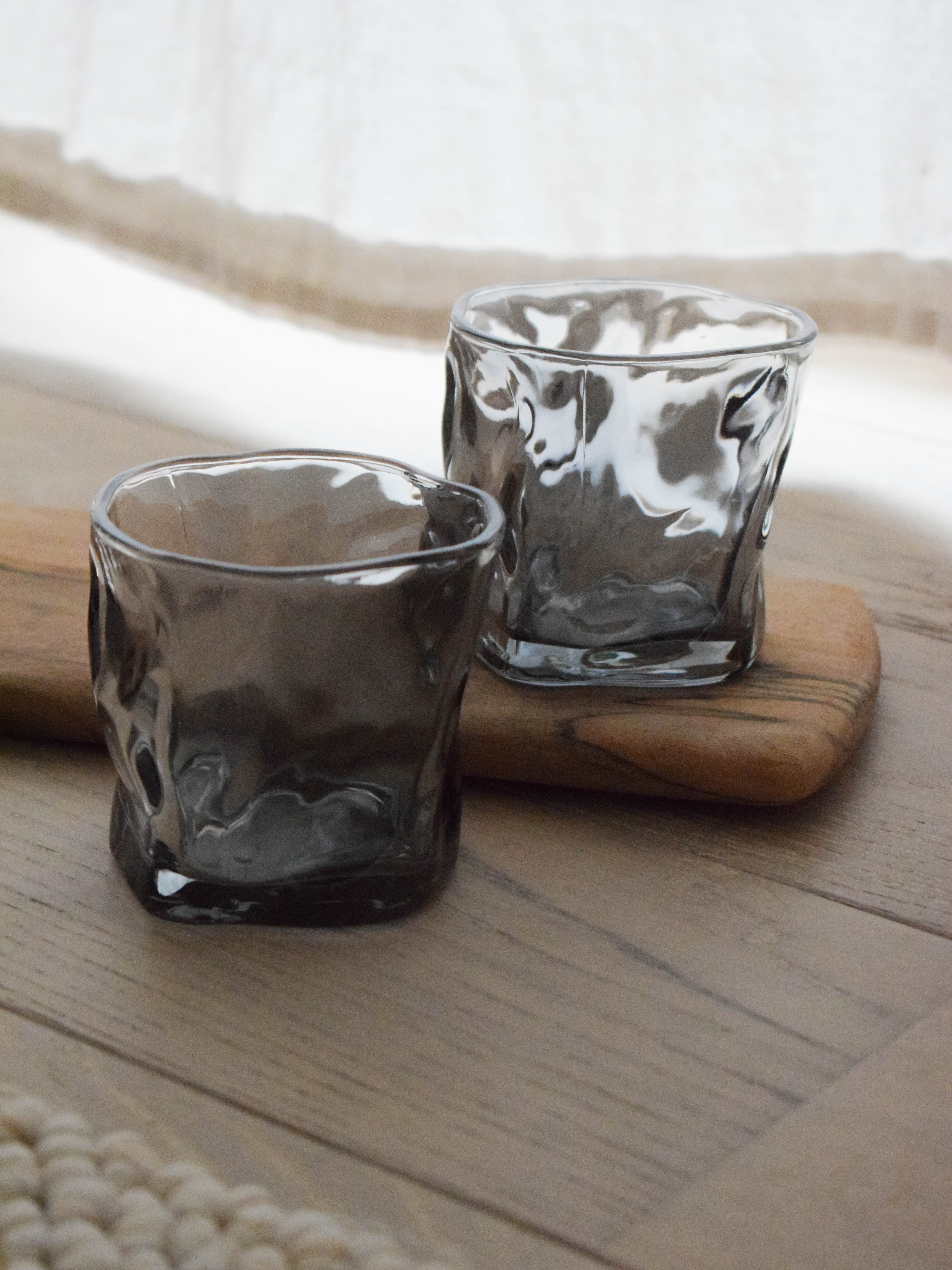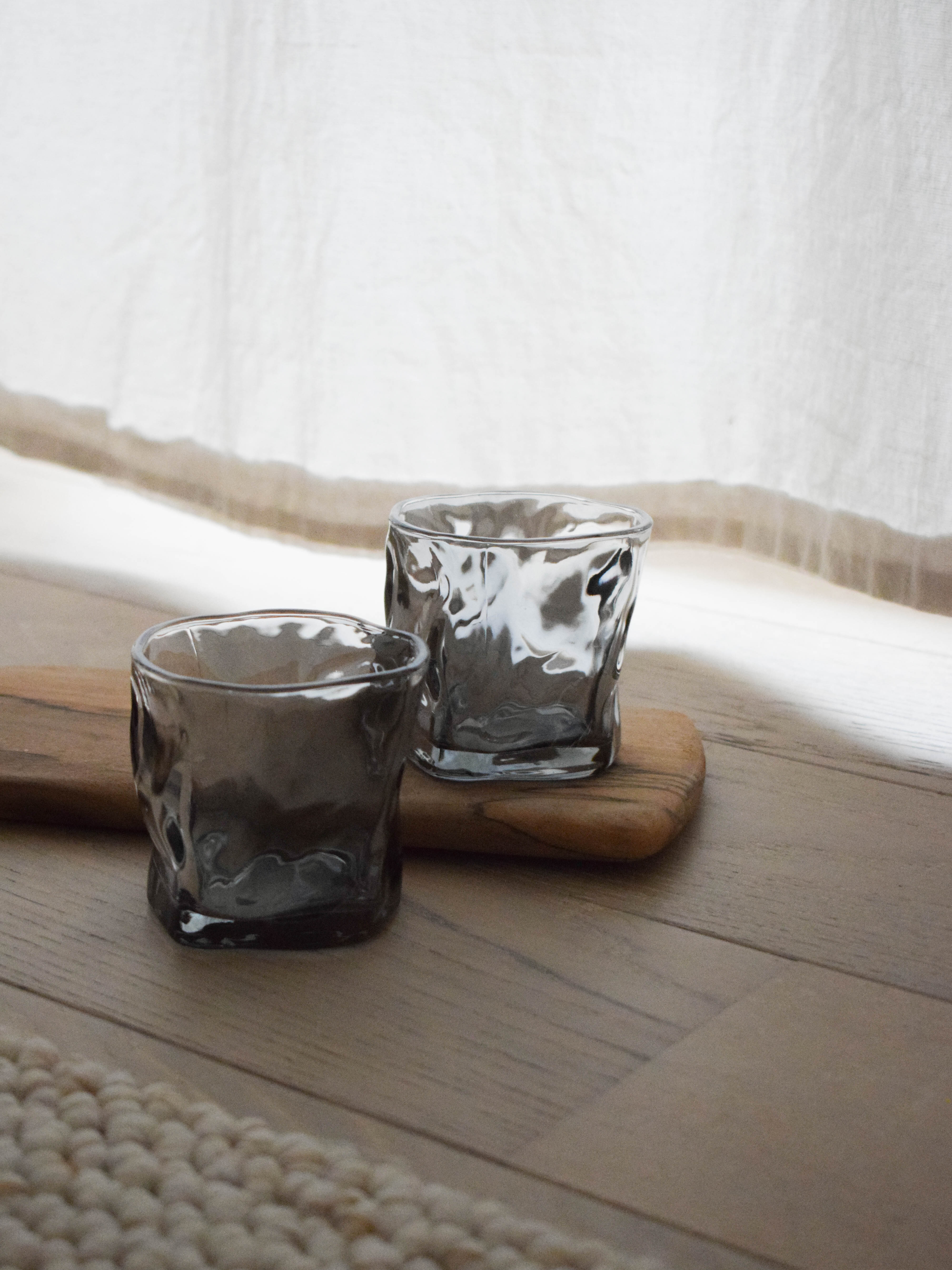 Capture the beauty of organic design with the Smoked Grey Bel Air Coves Glasses. Inspired by the moody elegance of coastal evenings, these glasses feature a sculptural, wavy texture that plays with light and adds a tactile element to your table. Whether for casual gatherings or refined dinners, the Bel Air Coves Glasses bring a sense of modern sophistication to any setting.