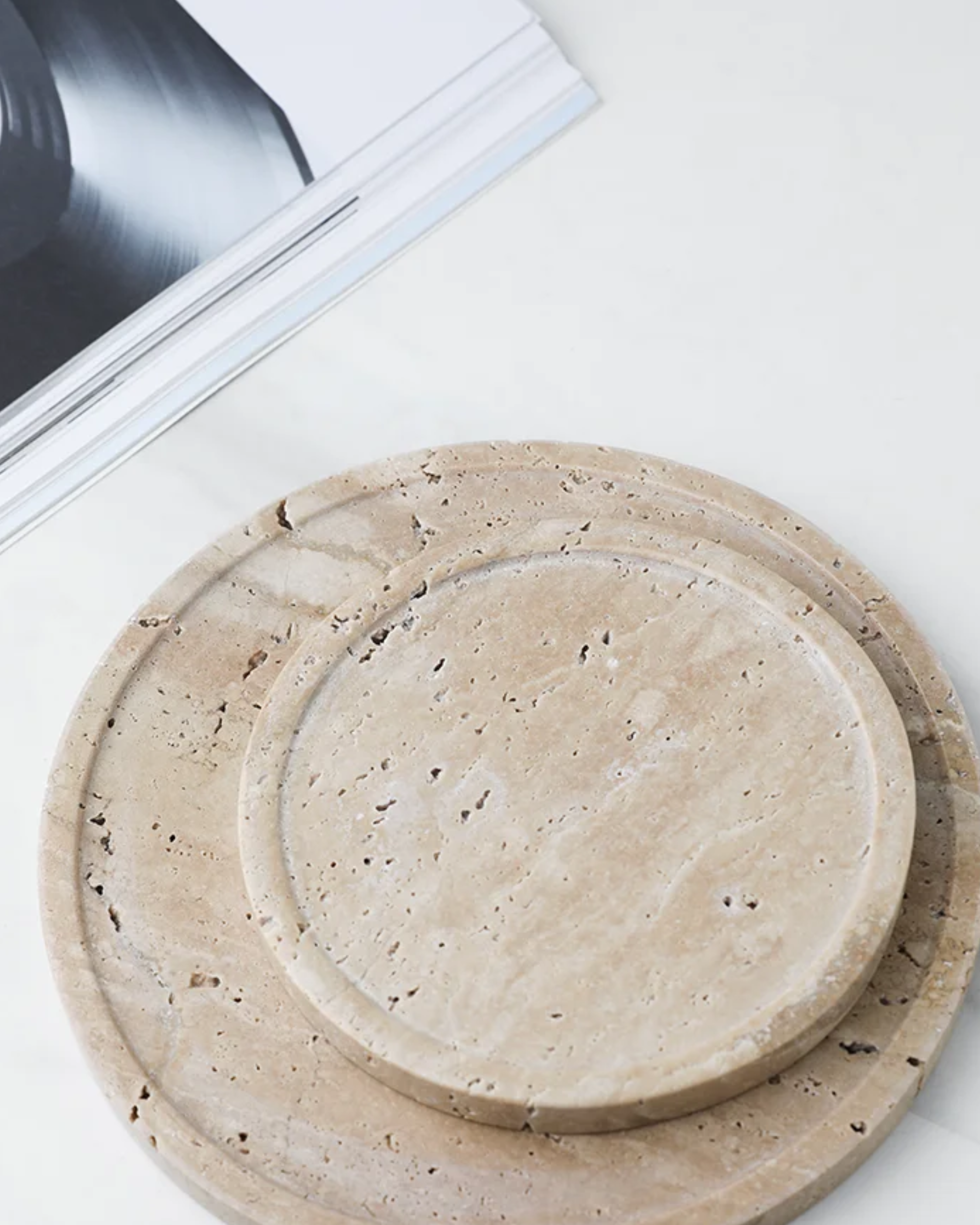 The perfect embodiment of classic elegance. Inspired by antique minimalism, our Antique Circle Tray is a timeless piece. Made from travertine, a stone with soft tones and a rustic appearance, it combines authenticity and character.