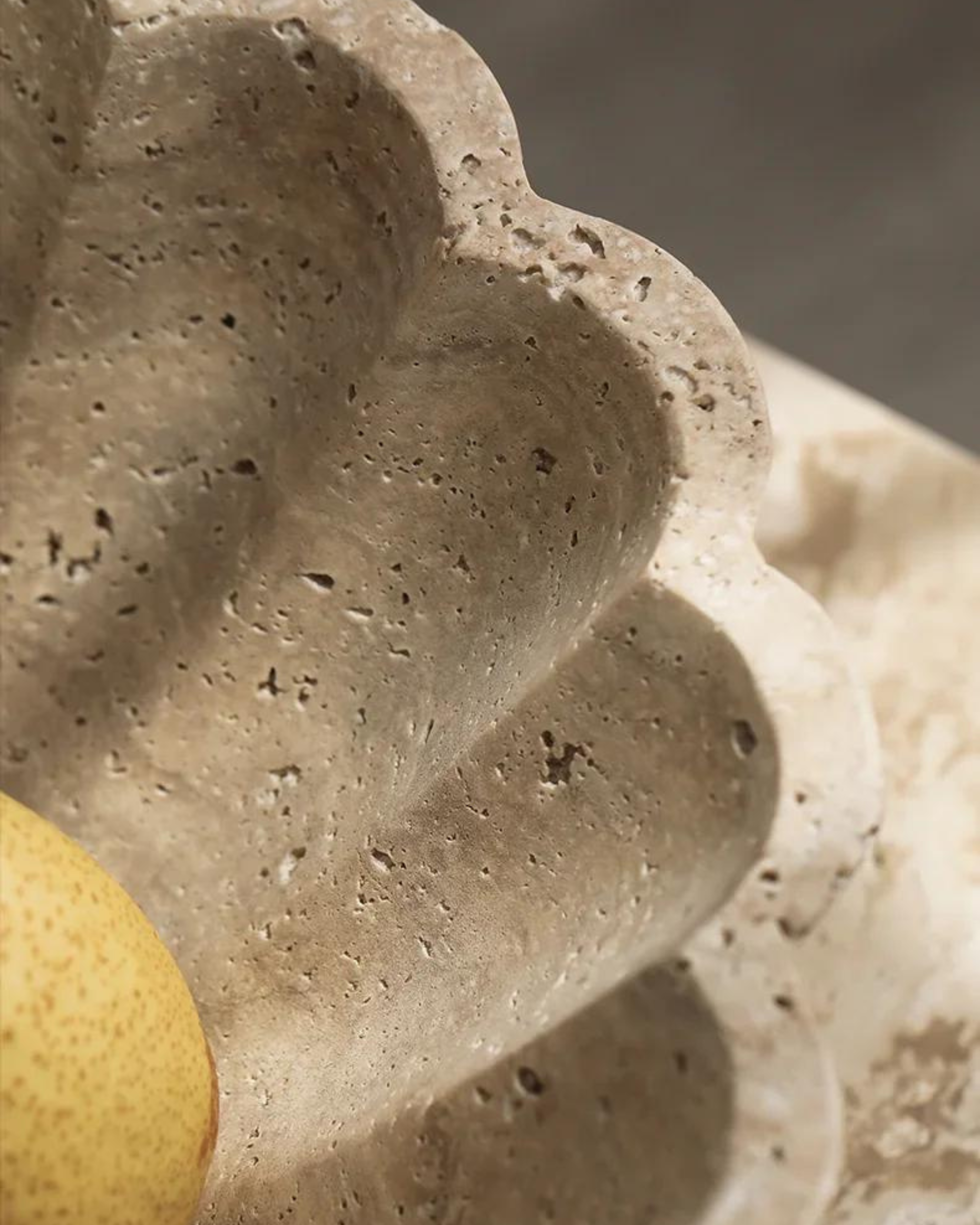 The perfect embodiment of classic elegance. Inspired by antique garden fountains, our Antique Fountain Plate is a timeless piece. Made from travertine, a stone with soft tones and a rustic appearance, it combines authenticity and character.