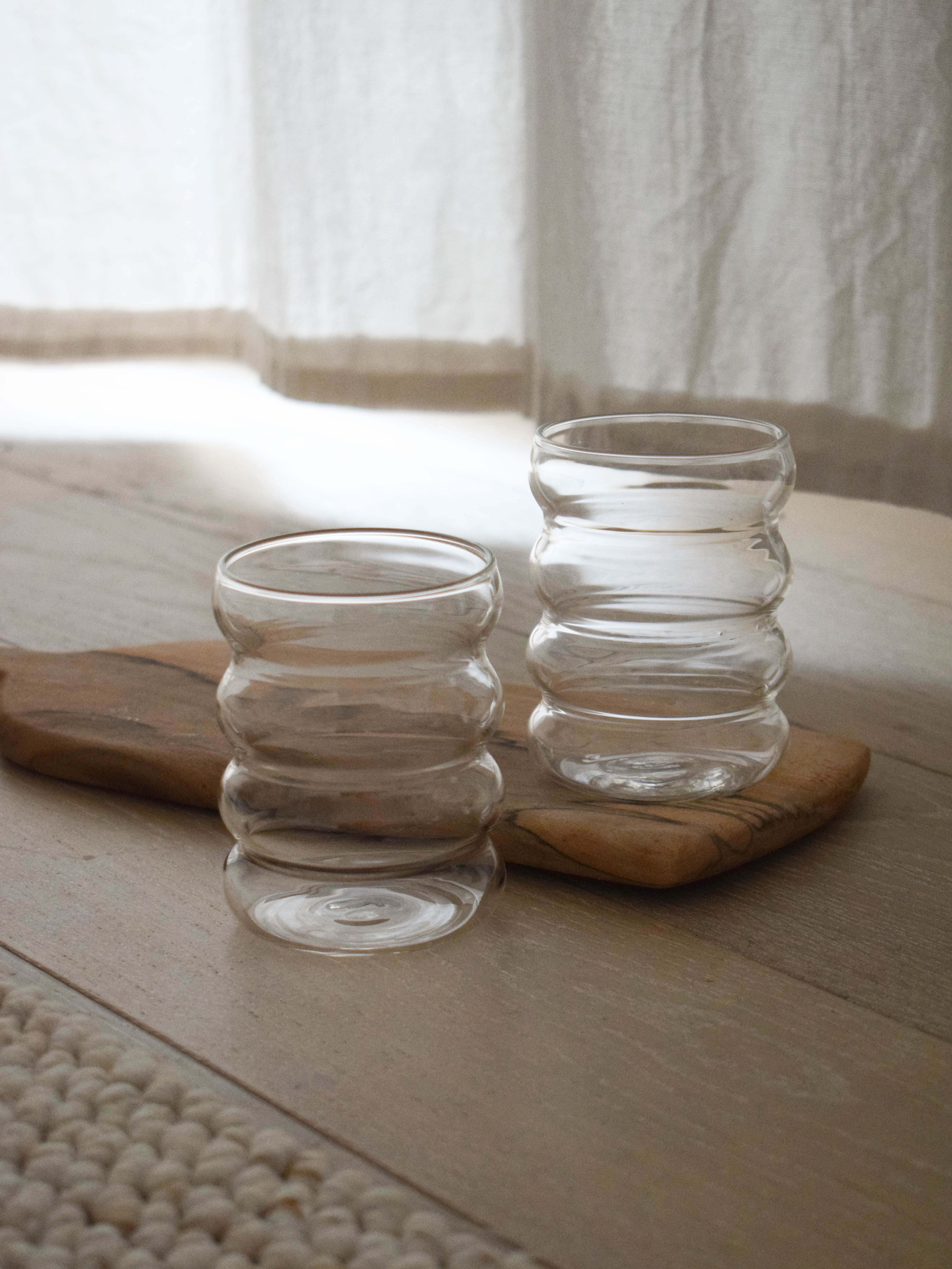 Crafted from high-quality blown glass, their sculptural shape and tactile feel elevate every sip—from cozy morning coffees to refreshing afternoon drinks and festive evening cocktails.