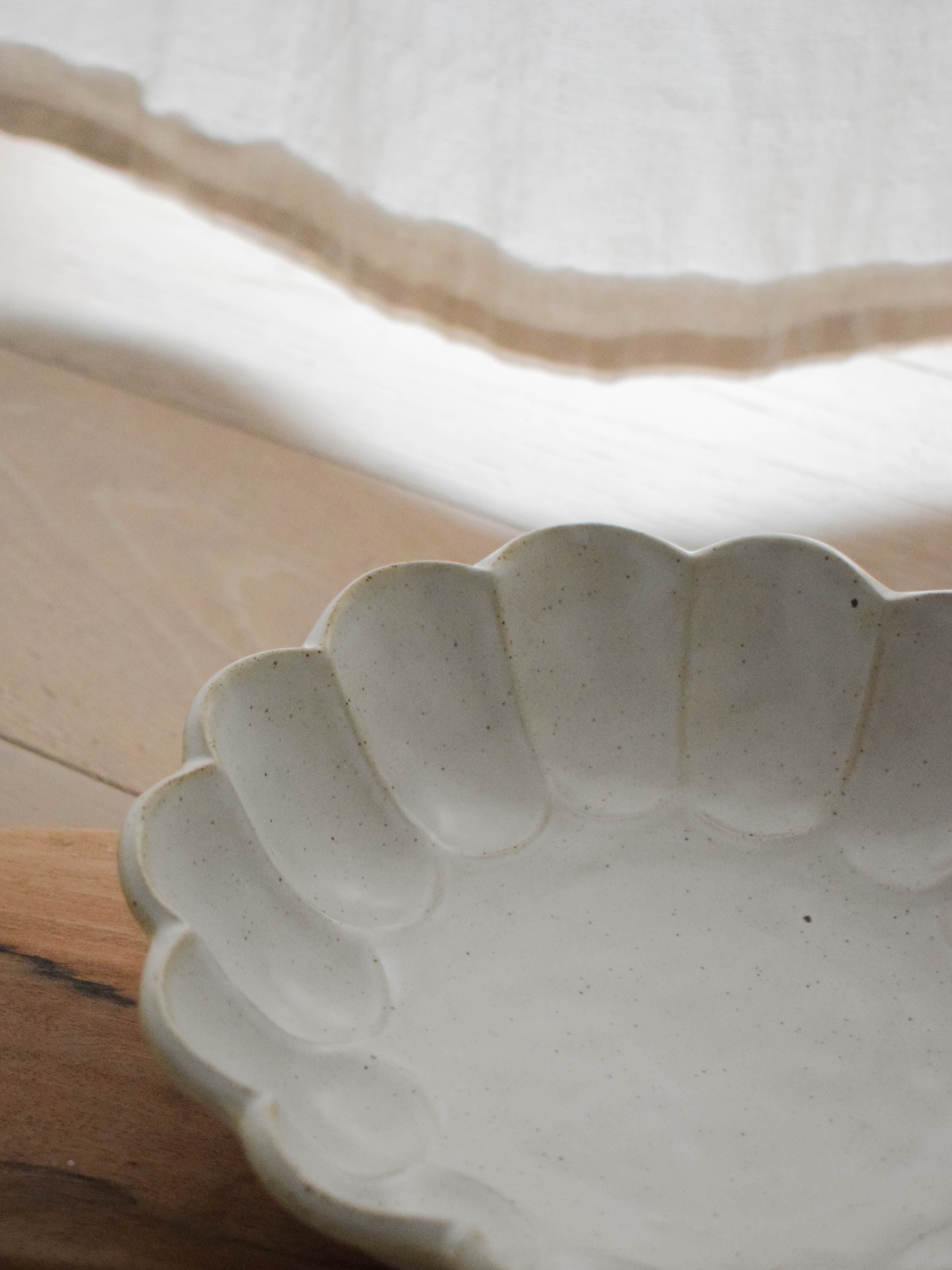 Make a statement with the Grande Palo Alto Ceramic Bowl. Designed to hold generous portions, its softly scalloped edges and natural, textured finish embody effortless sophistication—balancing modern aesthetics with artisanal heritage to create a timeless centerpiece for your table.